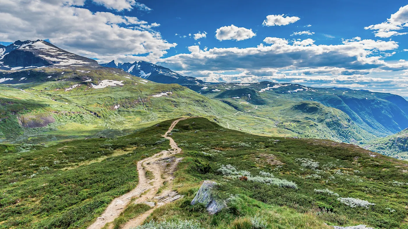 Il existe différents types de randonnées en Norvège, notamment des randonnées d'une journée sur des sentiers bien balisés, des circuits de plusieurs jours avec des nuitées dans des refuges ou des tentes, ou encore des ascensions de sommets élevés comme le Galdhøpiggen. Vous pourrez également faire ici des randonnées côtières le long de fjords spectaculaires ou encore des randonnées sur des hauts plateaux comme dans le Hardangervidda, le plus grand haut plateau d'Europe.