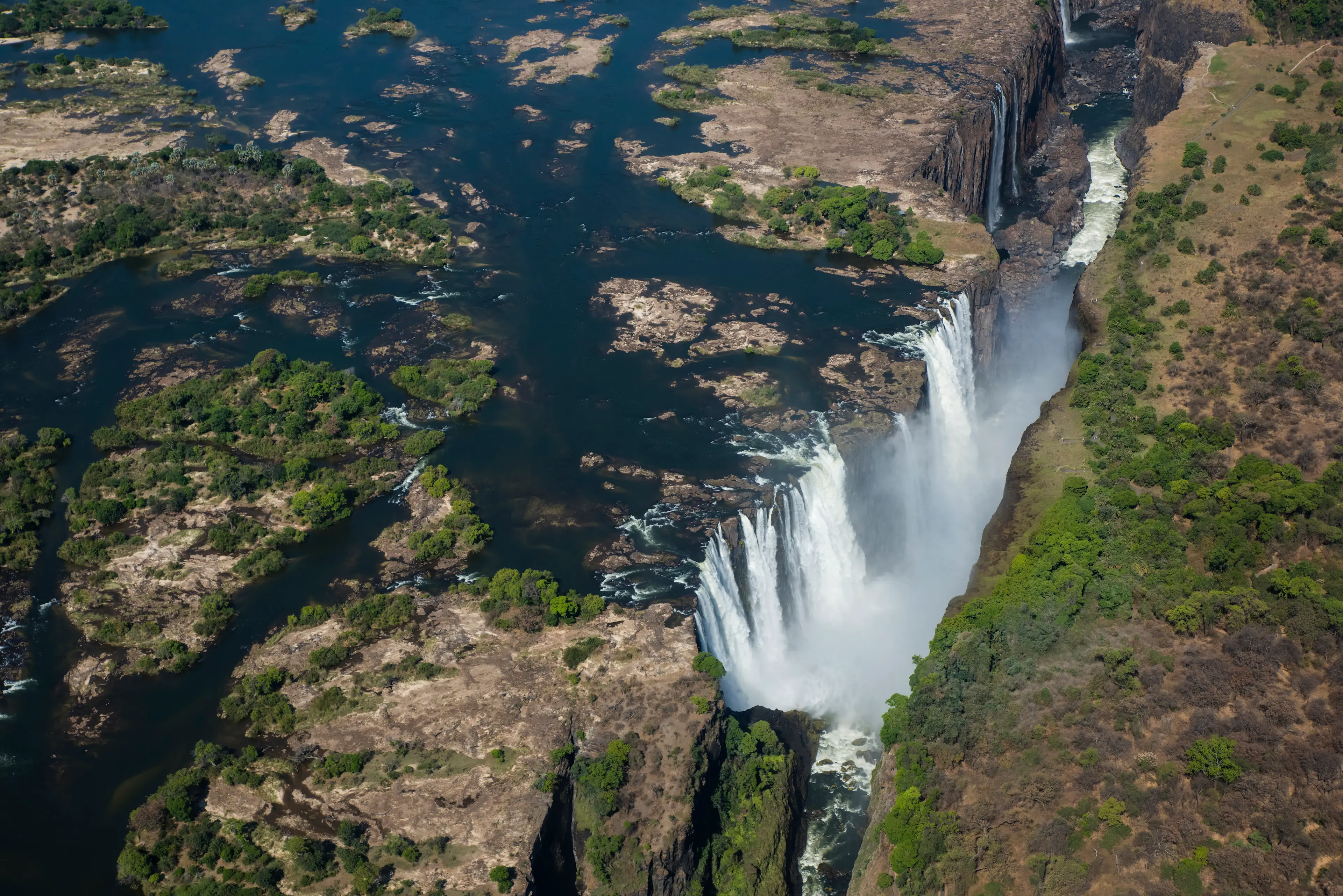 Entre les villes frontalières de Victoria Falls au Zimbabwe et de Livingstone en Zambie, l'eau du fleuve Zambèze se précipite à une hauteur de 60 m. Les chutes Victoria inscrites au patrimoine mondiale de l'UNESCO depuis 1989 comptent parmi les plus impressionnantes du monde. L'ethnie Kololo qui vit ici les appelle « Mosi oa tunya » ce qui signifie « fumée tonitruante ». L'activité incontournable à faire lors d'une visite aux chutes Victoria est une croisière au coucher du soleil sur le Zambèze. Vous pourrez y observer des animaux tels que des hippopotames et des crocodiles.