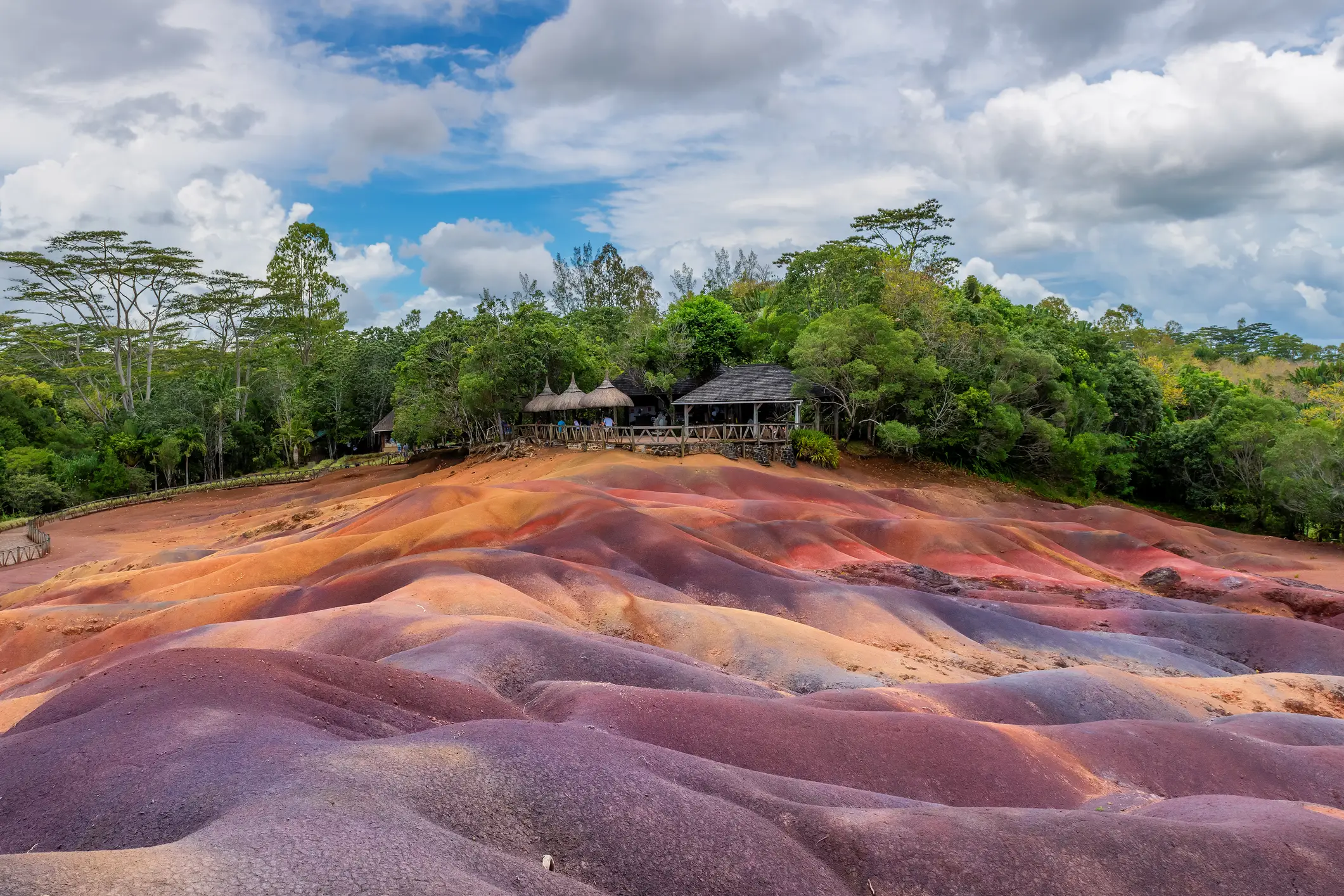Un phénomène géologique rare a donné naissance aux fascinantes Terres de Sept Couleurs de Chamarel. Au milieu d'une forêt, vous trouverez une roche de lave qui brille de 7 couleurs différentes.
