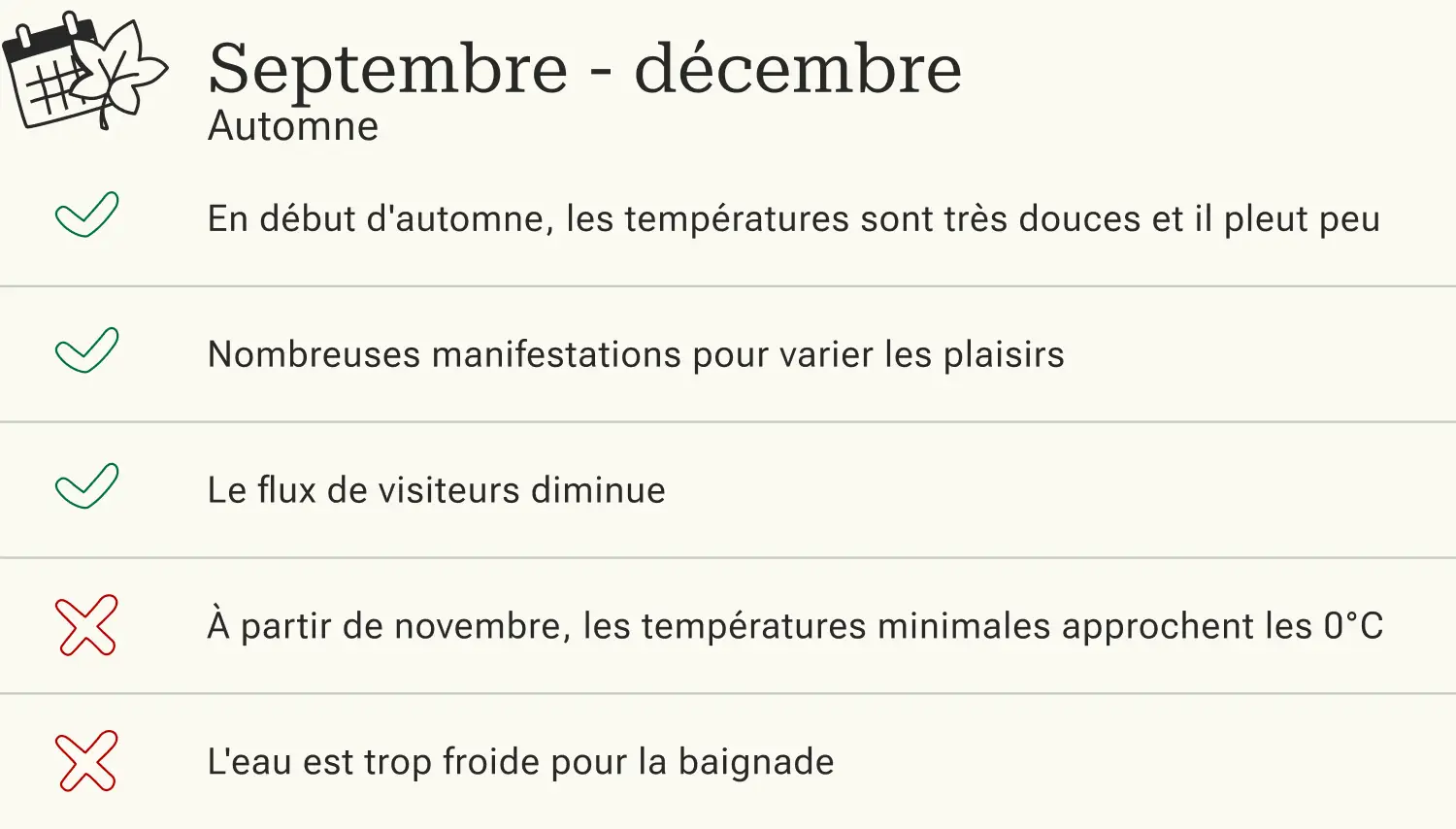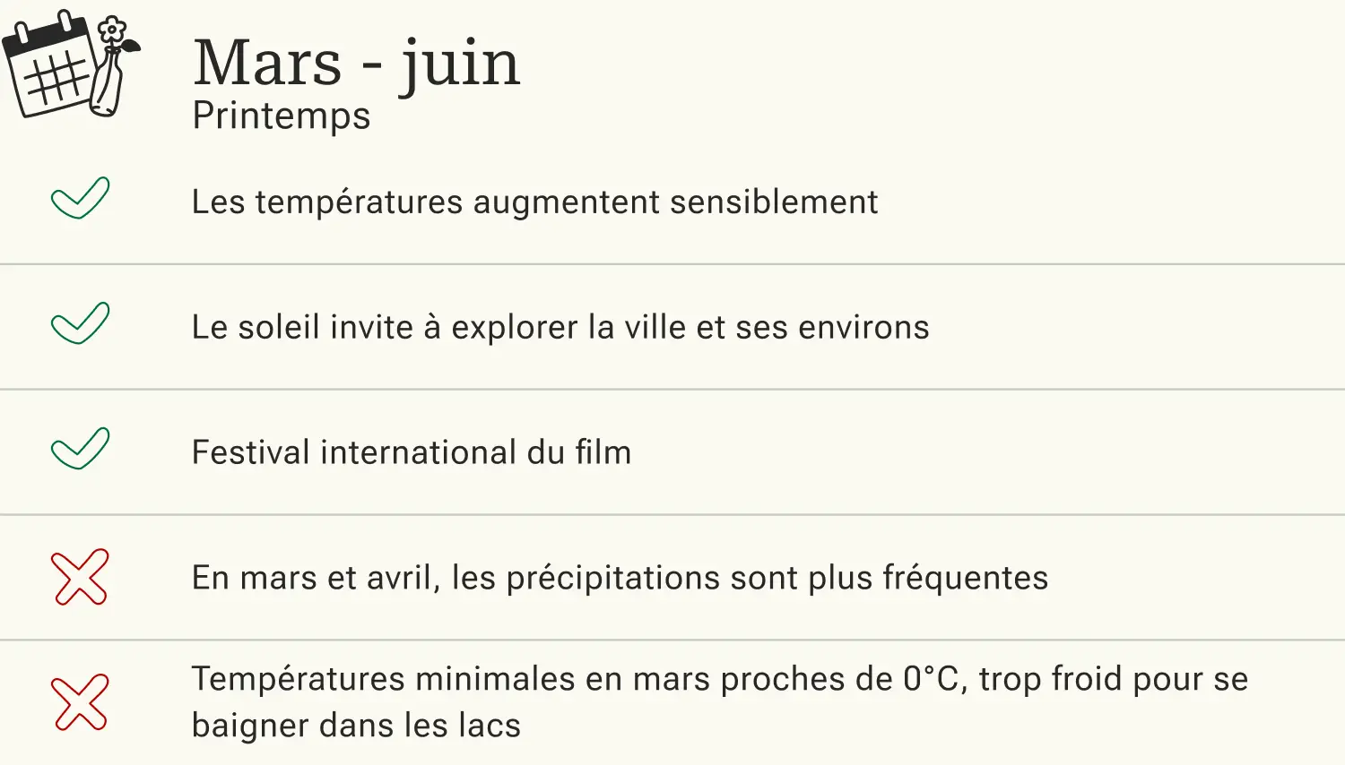 | Heures d'ensoleillement par jour | 5 | 5 | 6 | 7 | 9 | 11 | 11 | 9 | 8 | 6 | 4 | 4 | |