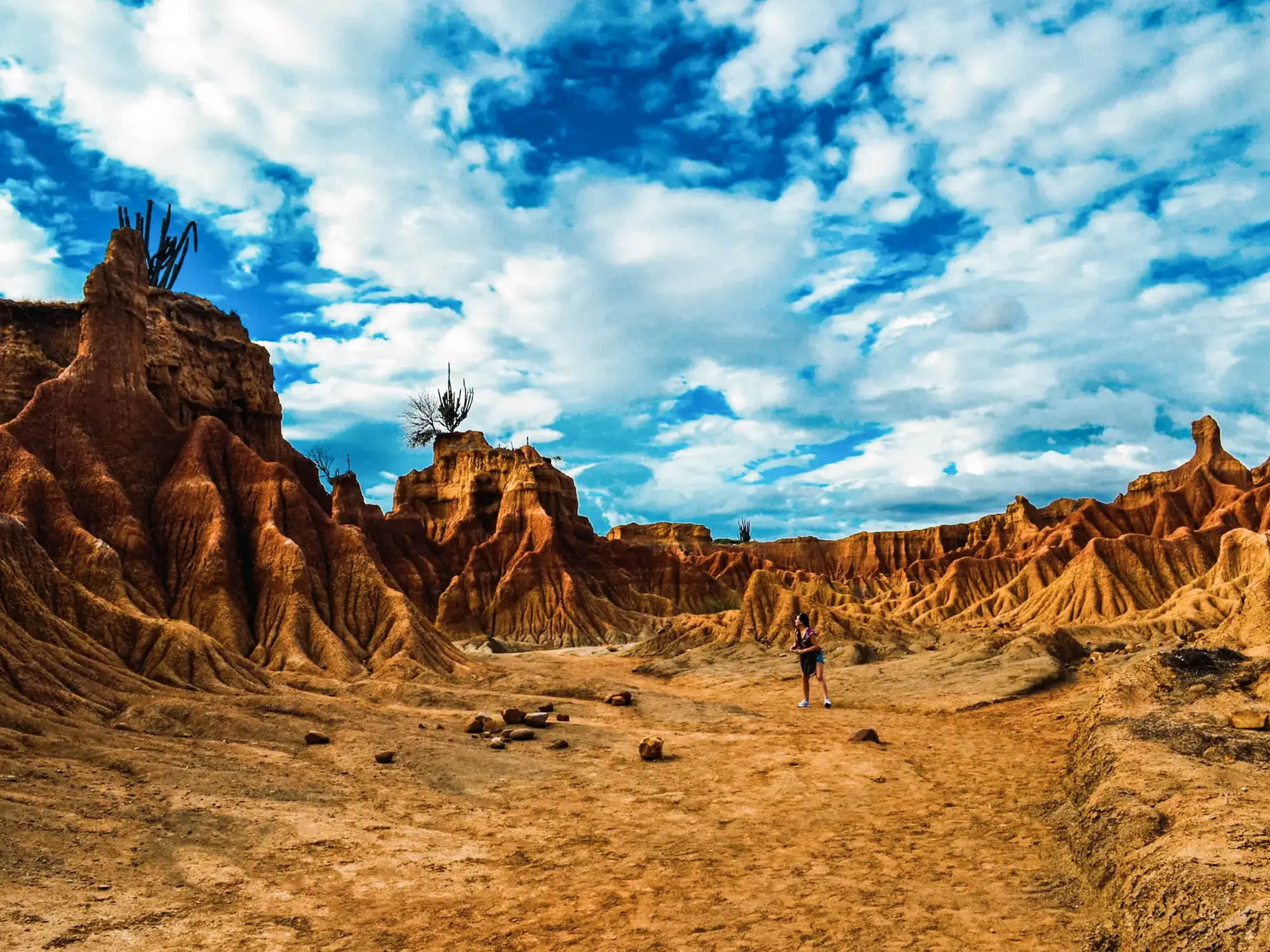 Les paysages désertiques de la forêt tropicale sèche sont caractérisés par des cactus verts et des formations rocheuses intrigantes. Pendant deux heures, marchez dans le fascinant désert de Tatacoa, en passant par les endroits les plus spectaculaires de la région.