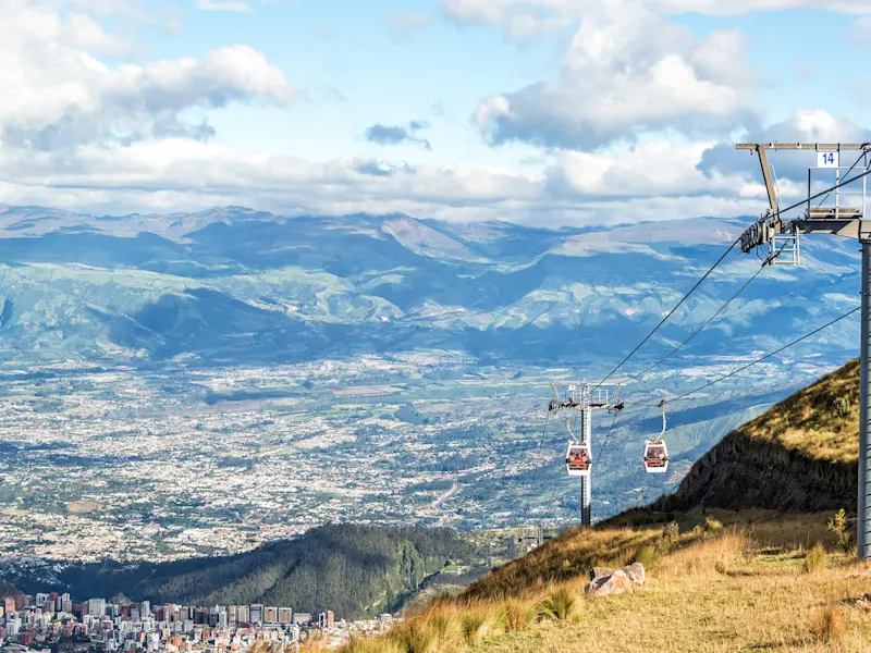 La capitale de l'Équateur, Quito, se trouve dans un bassin des Andes et est la plus haute capitale du monde, à une altitude d'environ 2 850 mètres. L'air rare peut être déconcertant au début, mais vous vous y habituerez rapidement. À bien des égards, cette métropole de millions d'habitants est une ville des plus extrêmes. Entourée de 14 volcans, elle présente des variations d'altitude atteignant près de 4 000 mètres à l'intérieur de la ville. Les rues escarpées et les vues spectaculaires sur les panoramas montagneux offrent des contrastes fascinants au milieu d'une foule dense. De plus, Quito est située à seulement 15 kilomètres de la ligne de l'équateur. Cependant, l'altitude de la ville permet des températures agréables et lui a valu le surnom de "ville du printemps éternel". Une excursion à l'équateur vaut la peine, avec une mise en valeur architecturale. Une ligne colorée vous permet de vous équilibrer sur l'équateur. La visite du Pichinchas, la montagne sacrée protectrice de la ville, accessible par un téléphérique, est également populaire. L'ensemble des bâtiments de la vieille ville est classé au patrimoine mondial de l'UNESCO. Avec 40 églises et 16 monastères, les Espagnols ont montré depuis la colonisation de l'Équateur en 1534 à quel point ils prenaient au sérieux l'évangélisation. Les autres points forts de la vieille ville incluent le palais présidentiel et le palais archiépiscopal.