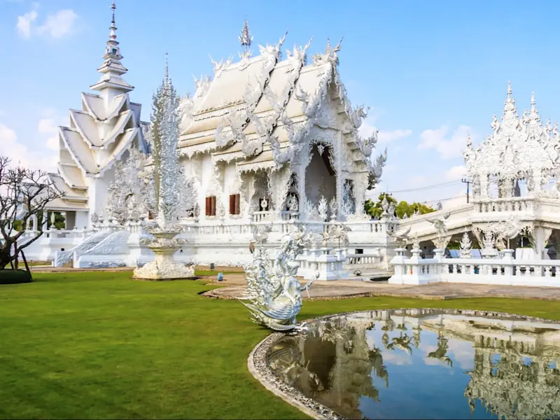 Au nord de la Thaïlande, Chiang Rai offre une atmosphère incomparable grâce aux majestueuses chaînes de montagnes de la région et un bon aperçu de la culture thaïlandaise. Visitez le temple blanc Wat Rong Khun comme la neige, grimpez sur le magnifique mont Doi Tung pour visiter le palais et admirer les fleurs multicolores du jardin Mae Fah Luang. Émerveillez-vous devant la grande pagode, explorez les grottes et les cascades du parc forestier de Tham Luang-Khun Nam Nang Non. Pour finir, laissez-vous imprégner par le delta du Mékong, dans le triangle d'or entre le Laos, le Myanmar et la Thaïlande.