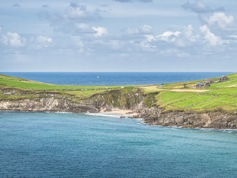 À l'extrémité ouest de la péninsule de Dingle, la plage de Coumeenoole est une portion de côte très appréciée. Cette bande de sable doré est entourée de falaises hautes et escarpées, et de champs verdoyants offrant une vue magnifique sur la mer jusqu'aux îles Blasket. La taille de la plage varie en fonction de la marée, cependant il y a une route qui serpente jusqu'au bord de la partie ouest et qui est accessible à tout moment. Les courants dans l'eau rendent la baignade incertaine ici, toutefois vous pouvez toujours tremper vos pieds dans l'un des bassins peu profonds dans le sable. En haut des falaises, il y a des places de parking et, dans le village de Coumeenoole, vous trouverez quelques cafés.