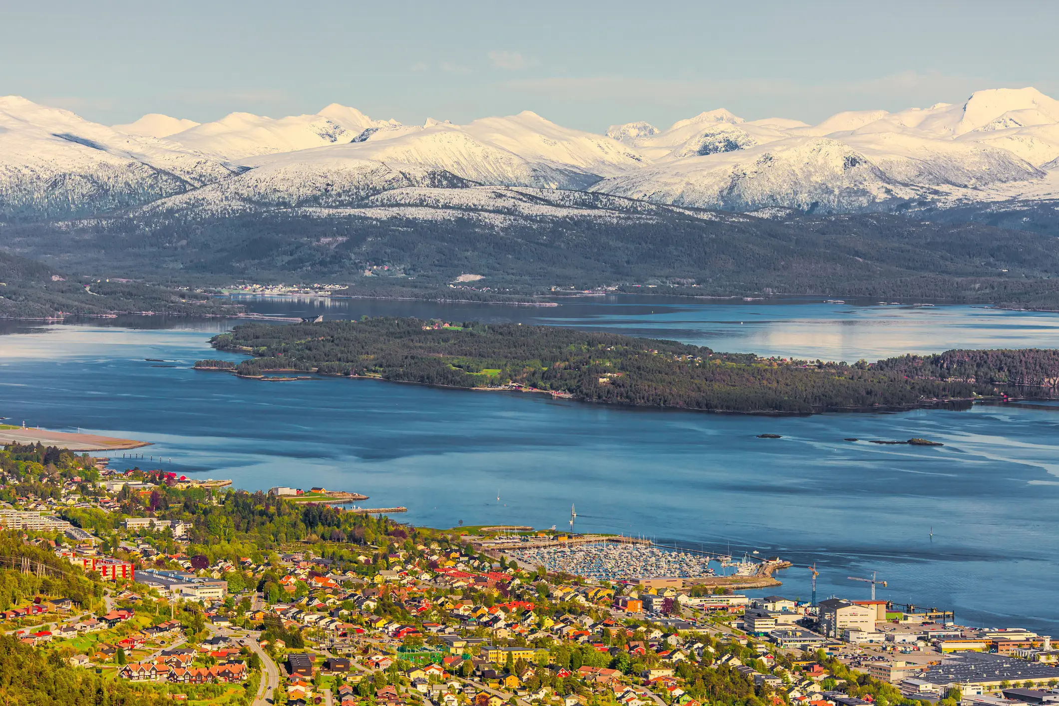 Surnommée la ville des roses, Molde offre un panorama exceptionnel sur 222 sommets montagneux depuis ses hauteurs. Son atmosphère festive, portée par l'un des plus vieux festivals de jazz d'Europe, en fait une escale culturelle incontournable du centre de la Norvège.