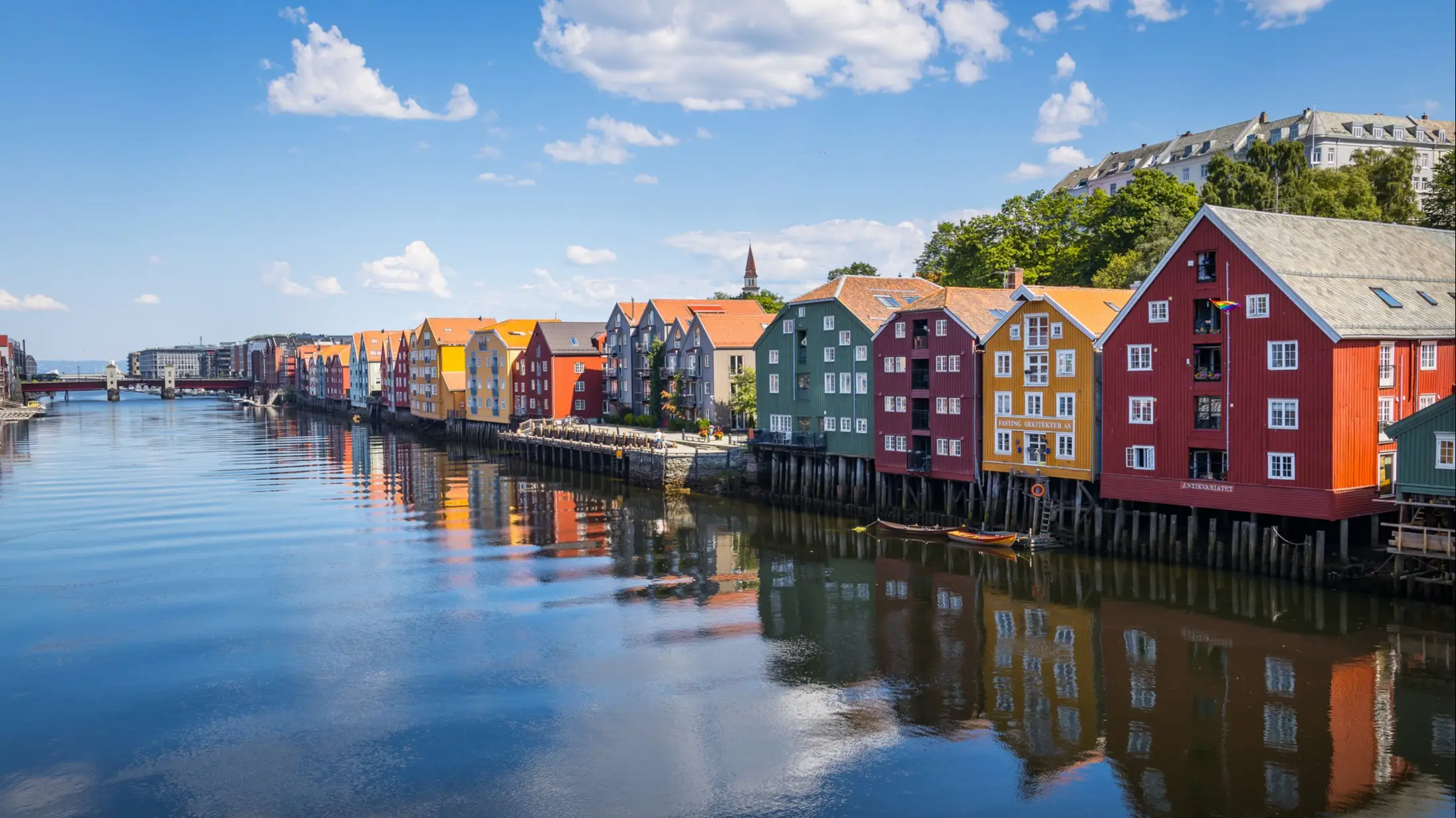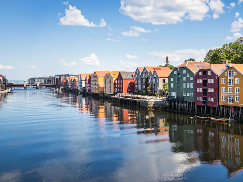 Trondheim était autrefois une ancienne cité royale et centre religieux majeur. Ses larges rues bordées d'entrepôts en bois aux couleurs vives abritent aujourd'hui des boutiques et cafés très raffinés.