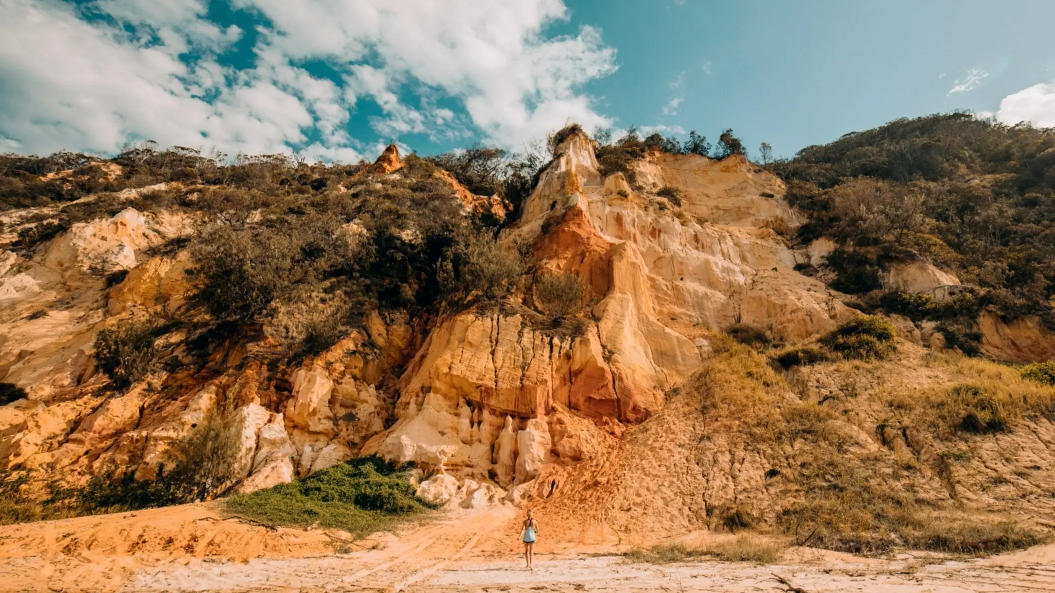 En plus du sable clair qui semble s'étendre à l'infini au-delà de la courbe naturelle de la baie, la plage de l'Arc-en-ciel dans le Queensland offre toute une série d'activités. Elle doit son nom aux falaises minérales qui entourent la plage et forment un jeu de couleurs multicolores. C'est le seul endroit d'Australie où l'on peut voir des dingos sauvages. La plage de l'Arc-en-ciel est également connue pour être l'un des accès pour Fraser Island, la plus grande île de sable du monde. Quelque soit votre niveau, c'est l'endroit idéal pour pratiquer le surf, notamment à Double Island Point, qui abrite la vague pour débutants la plus longue et la plus sûre d'Australie.
