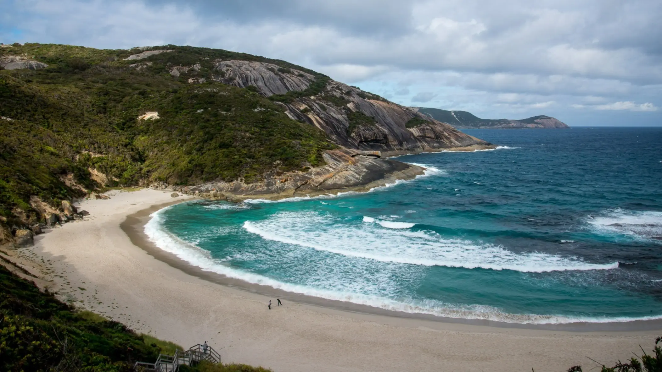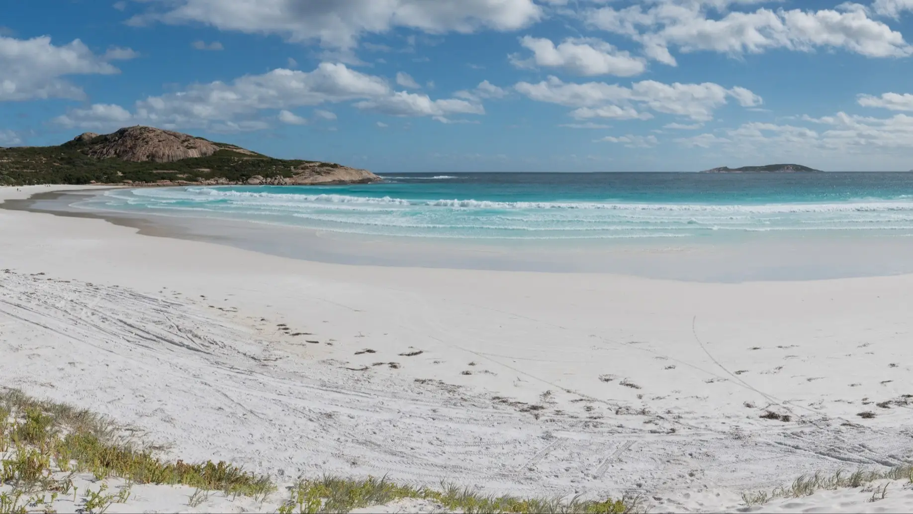 Lucky Bay abrite une plage idyllique de sable blanc immaculée aux eaux turquoises à visiter absolument. D'ici, on peut apercevoir l'archipel de la Recherche, ce qui souligne encore plus sa beauté naturelle. Longue de 5 km, elle est située le long de la ligne côtière du parc national du Cap Le Grand et dispose d'emplacements de camping, d'aires de pique-nique, de toilettes et de douches chauffées à l'énergie solaire. En règle générale, vous avez la plage presque pour vous seul, même si vous devez la partager avec les kangourous qui cherchent également à se rafraîchir ici. Entre juillet et octobre, il est facile de se baigner, de pêcher et d'observer les baleines.